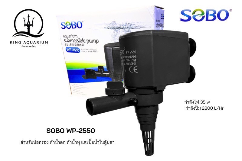 SOBO WP-2550 ปั๊มน้ำ สำหรับทำระบบกรอง น้ำพุ น้ำตก หมุนเวียนน้ำ ในตู้ปลาและบ่อปลา เปลี่ยนหัวพ่นน้ำให้เป็น 2 ทางได้